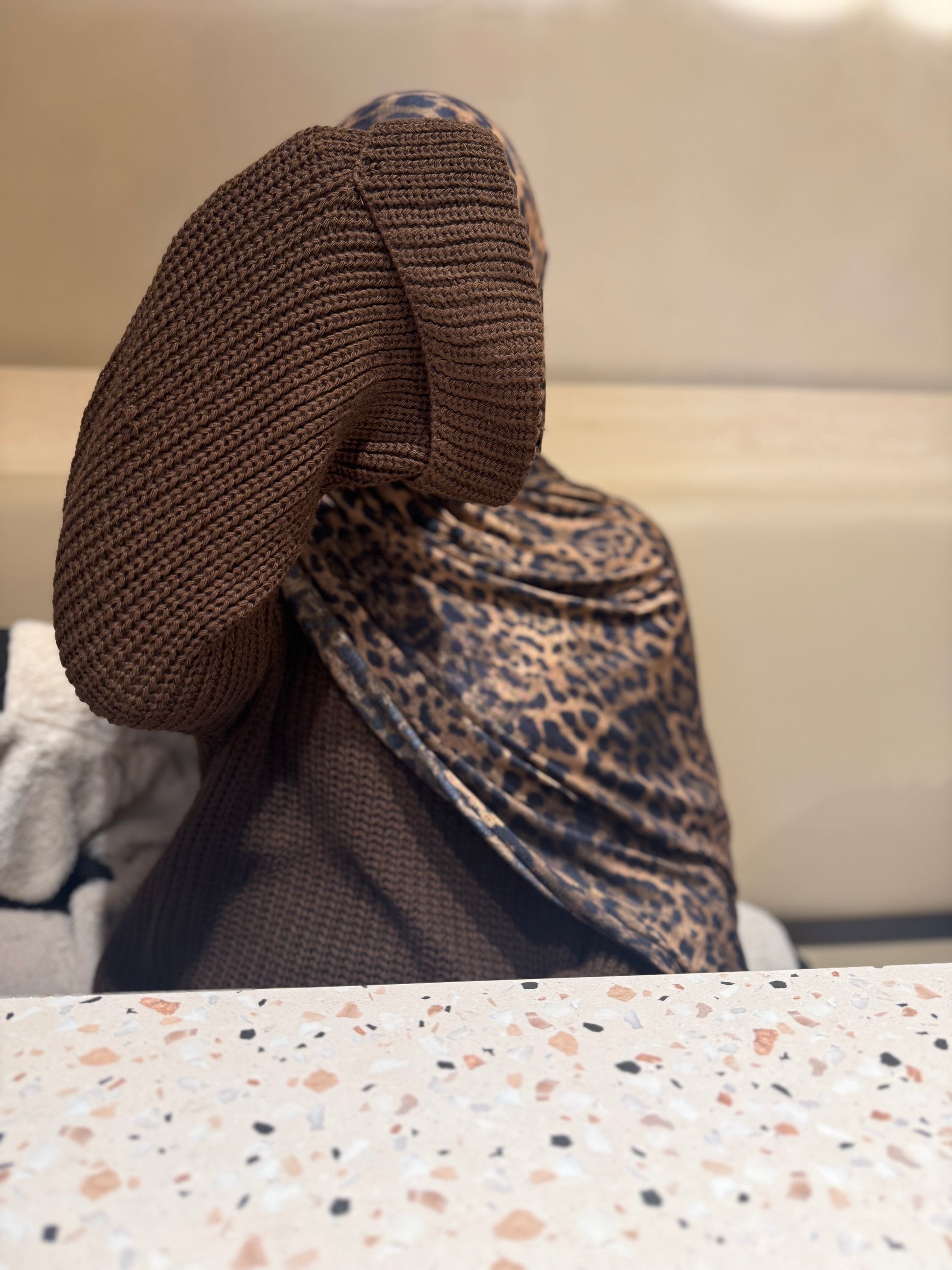 “Brown Leopard Reversible Jersey Hijab – Double-Sided Print”